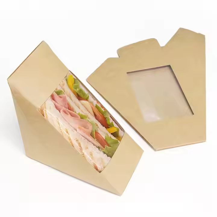 Elevate your food presentation with our Custom Handmade Triangle Kraft Paper Boxes – the perfect sustainable packaging solution for sandwiches and takeaway meals. These uniquely shaped containers combine artisanal craftsmanship with modern eco-friendly materials, creating an unforgettable unboxing experience for your customers. Each triangle box is meticulously handcrafted from premium food-grade kraft paper, offering superior durability while maintaining environmental responsibility. The distinctive triangular design not only showcases your sandwiches beautifully but also provides practical benefits for easy handling and transportation. Perfect for delis, cafes, catering services, and food businesses looking to make a lasting impression.
